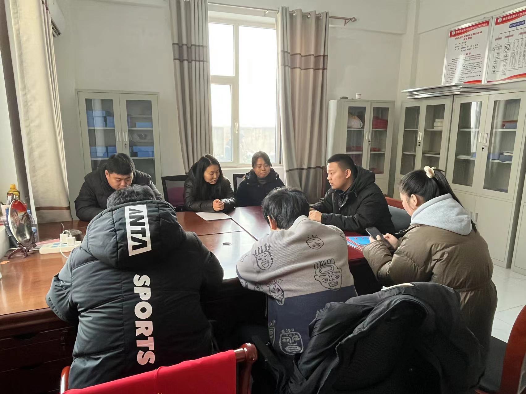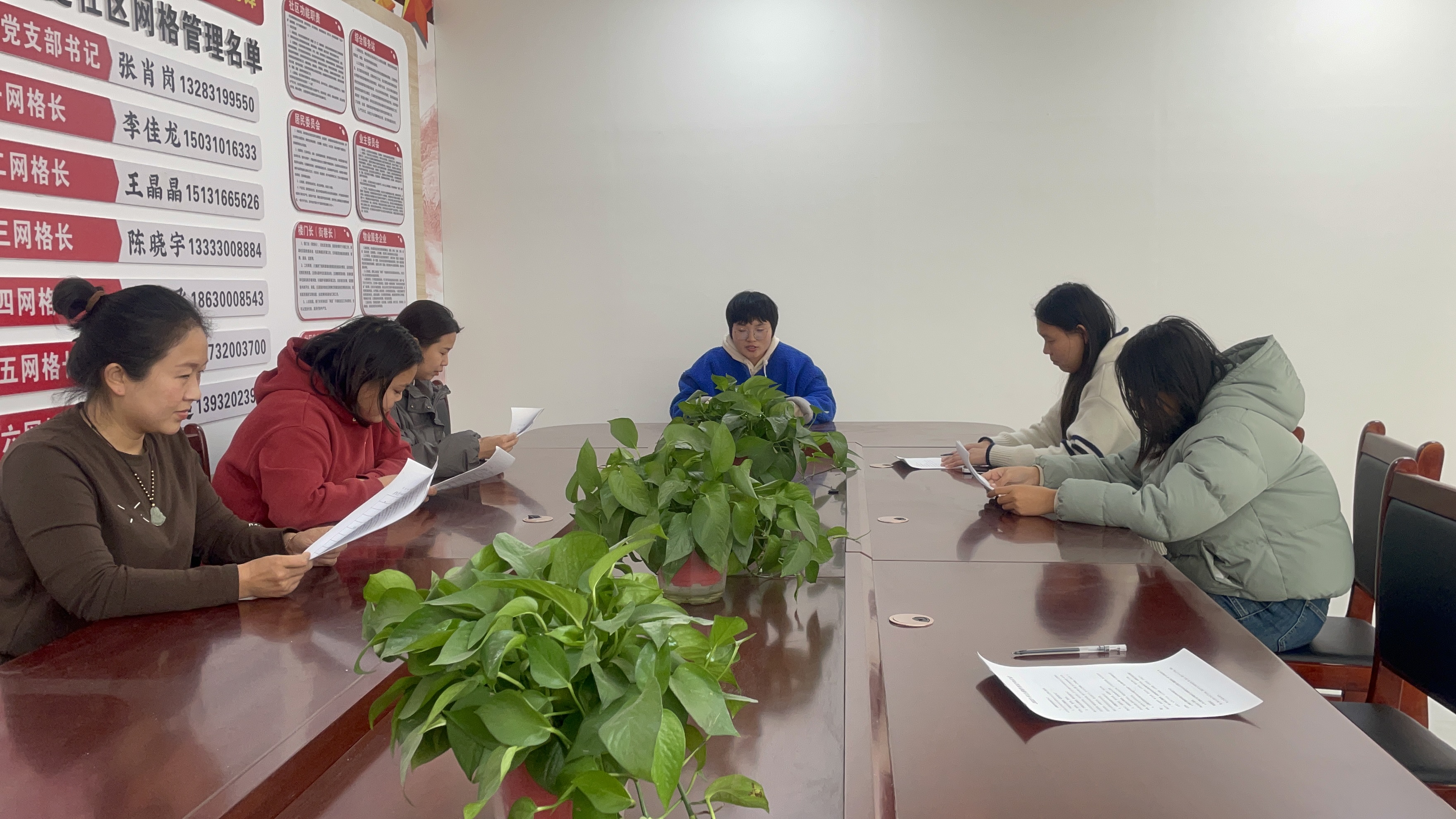 2023年12月16日街道办龙乡社区召开社区党支部会议,学习主题教育应知应会